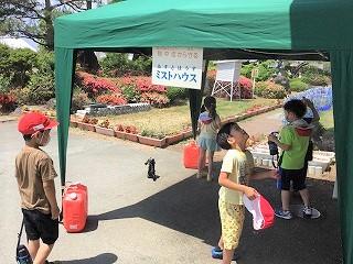 コロナウィルス感染症予防のため、マスクをしての生活を送っています。しかし、季節的に気温も高くなり、熱中症が懸念されます。教室ではエアコンを活用しながら、コロナウィルス感染症と熱中症の両方への対策を心がけています。また、外には、昨年度の運動会で設置していた『ミストハウス』を昇降口に設置し、活用しています。ミストハウスの中も「密」にならないように気を付けて上手に活用しています。また、保護者の皆様には、毎日の水筒の準備、「マスクを外してもよい」場面において、外したマスクを清潔に保つための『マスク入れ』を準備していただき、ありがとうございます。これからも、ご理解・ご協力をいただきながら、子どもたちのために一緒に考え、行動していきたいと思います。