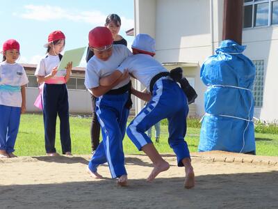 すもう学習を参観していただきました 投稿: 小田島小学校-1 (18:05) 本日、すもう学習を保護者のみなさまに参観していただきました。 力をぶつけ合い、迫力あるすもう学習となりました。 天気に恵まれ、久しぶりに土俵を使ってすもう学習公開を行うことができました。