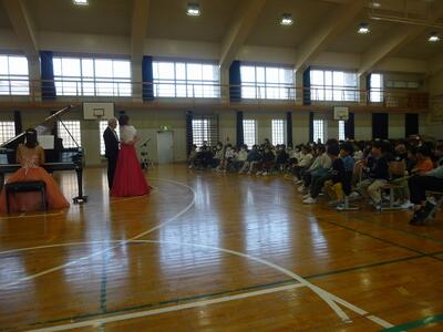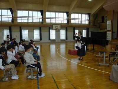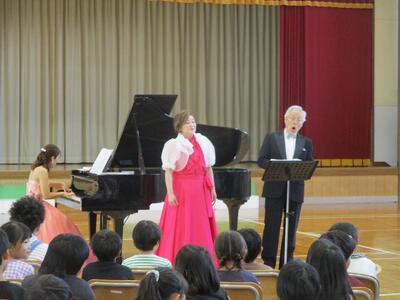 17日 山形大学名誉教授 オペラ歌手の藤野祐一・恵美子先生をお招きし「小田島小 オペラリサイタル」を行いました。